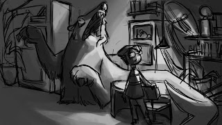 The second one is part of the storyboard that Annlyn gave and I thought it wasn't as strong of a composition for a moment piece so I revised it a bit and make it bigger. What do you guys think?